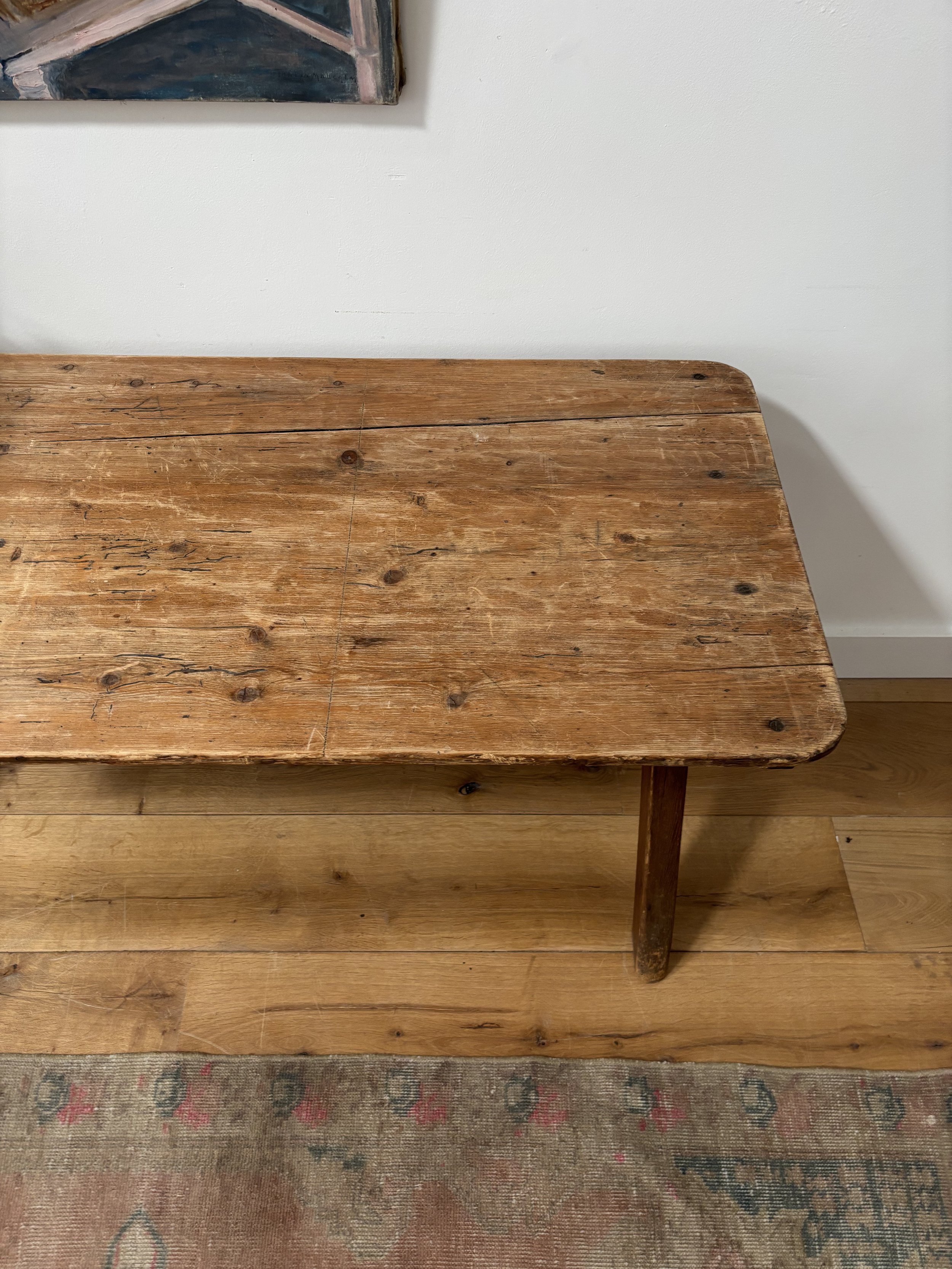 A rustic and simple 19th century tavern table on a traditional X frame with lead pole support. In good condition, perfectly sturdy and made from pine.
